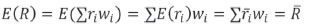 El valor esperado de una suma ponderada es el resultado ponderado de los valores esperados (Markowitz, 1952, p. 80), así, el valor esperado de R se calcula como: