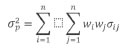 La varianza de este portafolio calculada como en (2) es la siguiente: