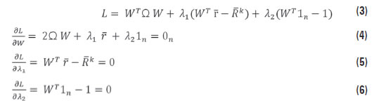 Al aplicar la ecuación (9) utilizando la información de la matriz de varianzas y covarianzas (Tabla 2), se obtiene el portafolio de mínimo riesgo, con los siguientes resultados: