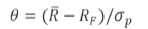 Ahora, el portafolio de Tobin se obtiene maximizando la función θ correspondiente a la ecuación (12). Al reemplazar los valores encontrados de W en esa ecuación, se puede conocer el valor de la pendiente, tal como aparece a continuación:
