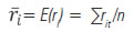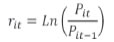 Donde Ln es logaritmo natural, rit es el rendimiento en el día t de un título i, Pit es el precio del título i en el día t y Pit-1 el precio del activo i en el día anterior. Conocidas las rentabilidades observadas de cada acción, se pueden calcular los valores esperados de los rendimientos y sus varianzas. Los rendimientos esperados son calculados dividendo la sumatoria de las rentabilidades periódicas entre el total de observaciones de la serie, así: