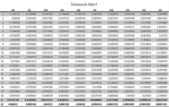 ecuación (8) por encima de -0,00154269. Los valores utilizados para tal fin son: