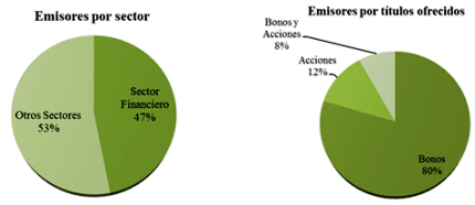 Gráfica 1. Caracterización de los emisores por sector y clase de título emitido. Fuente: Este estudio