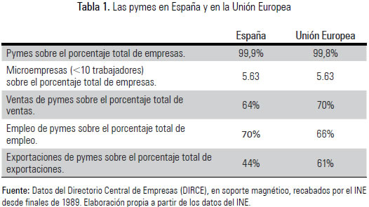 Por otro lado, en España, las pequeñas y medianas empresas constituyen el 99,9% del total de empresas y generan el 64% del total de las ventas, pero tan solo el 44% del volumen total de exportación (Tabla 1). Además, el 95,7% de las grandes empresas españolas realizan actividades exportadoras, mientras que ese porcentaje se reduce al 30,7% entre las empresas de menos de 20 empleados (Ortega & González, 2000). De esta manera, se podría afirmar que la diferencia en la actividad exportadora de dichas pymes se debe a la percepción, con mayor intensidad, de las barreras a la exportación.