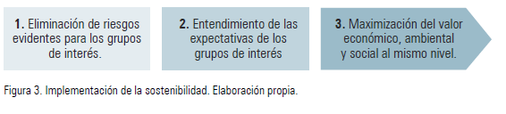 Dicho lo anterior, podemos señalar que para alcanzar la sostenibilidad es fundamental que se identifiquen los grupos de interés y los riesgos socio-ambientales asociados a las actividades de las organizaciones, para que se pueda generar un entendimiento entre esta y los grupos de interés con las expectativas que tienen cada uno de ellos en referencia a las acciones que pueden tomarse para disminuir, mitigar o compensar los riesgos, y tomar las acciones en las que se reviertan los riesgos negativos y se potencialicen los impactos positivos con la implementación de la sostenibilidad en las IES (ver Figura 3).