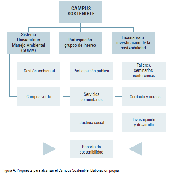 Para el caso particular de las universidades, el concepto de Universidad Sostenible (US) o Campus Sostenible (CS) ha sido abordado en los últimos años como una estrategia de gestión. Así, Velázquez, Munguia, Platt y Taddei(2006, p. 812) definen la US como aquella institución que direcciona, involucra y promueve, a nivel regional y global, la minimización de impactos ambientales, económicos, sociales y efectos generados en la salud humana por uso de los recursos, en el ejercicio de la docencia, investigación y administración, en aras de ayudar a la sociedad a hacer tránsito a estilos de vida sostenibles. Así mismo, Cole (2003, p. 30) señala que la US es aquella que se responsabiliza local y globalmente en la protección de la salud y el bienestar humano y el de los ecosistemas, direccionando a toda la comunidad universitaria en la resolución de los retos sociales y ecológicos. En definitiva, hay un entendimiento en que el CS requiere que todas las actividades diarias que se realizan dentro de las IES hagan un balance entre los objetivos económicos, sociales y ambientales evaluados en el largo plazo (Alshuwaikhat & Abubakar, 2008).