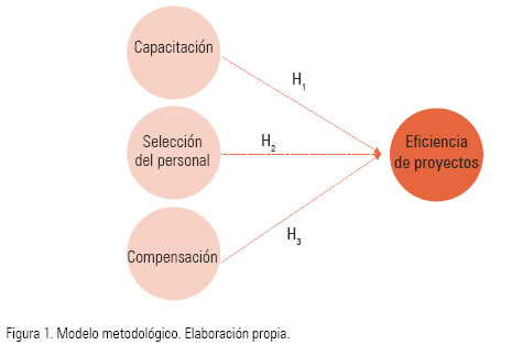 A partir de la revisión de literatura se seleccionaron tres prácticas que se adaptan a las características de las empresas que basan sus procesos en la ejecución de proyectos, las cuales son la capacitación, la selección de personal y la compensación, estableciéndose así tres hipótesis de trabajo.