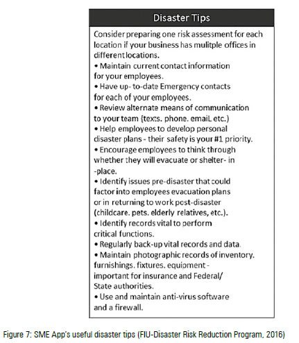 The initiative encompasses four interventions: (1) developing a Small-and-Medium Enterprise (SME) disaster resiliency and recovery toolkit (in collaboration with the FIU Small Business Development Center (SBDC) to merge BCP and DRR into one single, comprehensive, and practical guideline; (2) translating that guideline into Spanish and adapting it to the Latin American and Caribbean environment; (3) implementing a 'train the trainers' strategy on the toolkit's usage; and (4) developing an SME application (SME app) (in collaboration with the FIU-Digital Communications Unit), based on the information in the SME toolkit. The SME App, developed for both iOS and Android mobile devices and tablets, will be available in both English and Spanish.