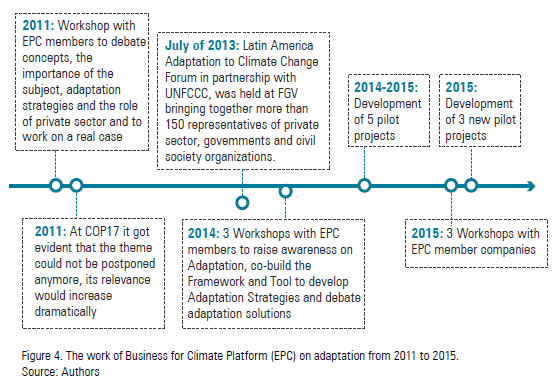 The figure below shows a summary of all information brought about the work that EPC has been developing on adaptation, in a timeline from 2011 to 2015.