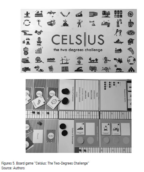 In an effort to disseminate complex concepts and foster the discussion and reflection on sustainability subjects, GVces has been developing different learning tools. A board game is one of them. To work on the climate change agenda, with special focus on mobilization and engagement of stakeholders, GVces developed in 2012 the game Celsius: The Two-Degrees Challenge (Figure 5).
