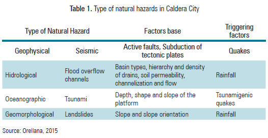 The coastal area of Atacama region has geomorphological, climatic and meteorological characteristics typical of a desert environment (Soto et al., 2012). This creates conditions for the presence of four major natural hazards as described in table number 1.