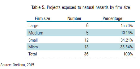 Regarding the size of investing firms, 71.05% are micro and small-sized firms, as shown in table number 5. This is a key factor, as small and micro enterprises in this area generally do not have continuity plans or insurance covering damage due to disasters, or characterized as a seismic event, indicating a possible that they cannot return to work.