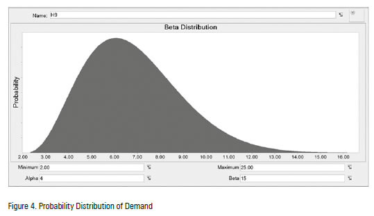 Sensemaking. The fall of commodity prices as well as the disaster had caused unfavorable outcomes, yet the events are unprecedented ones for the industry. The management has no historical data as to how fast the recovery will be or the economic losses. However, judging from the experiences of the country in responding to such disasters (Aceh's tsunami and Yogyakarta's earthquake), the recovery could take about 1-2 years, considering that the recent disasters that hit the business area were relatively small compared to the other two giant disasters. The implementation of BCP saved valuable assets, so that there was no serious damage to the production facilities. Assuming that the low commodity price will last during the project's life, management could not expect the take-or-pay clause in the agreement will go into effect. However, what management should concern itself with is the expected future demand of gas. This depends on the recovery of the affected businesses. Based on estimation, the demand for gas will remain low, at about 5 BBTUD. However, there is a chance that as soon as the affected area recovered from the disaster, the demand could reach 25 BBTUD, yet this is very unlikely. The most likely demand is about 6 BBTUD which is based on the initial feasibility study which will yield a positive NPV. The following graph shows the probability distribution of possible quantity of demand.From Figure 4, we can see that the probability that the demand will be more than 6 BBTUD is greater than the demand will be less than 6 BBTUD. It indicates that there is still a chance that this investment project would remain feasible.