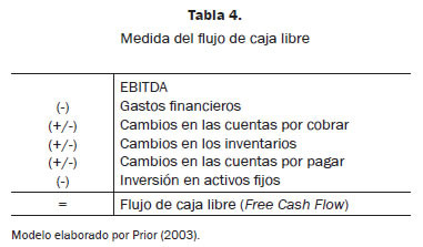 En este estudio se asume un modelo propuesto por Prior (2003) para el cálculo del FCF. Entendemos que este modelo está estrechamente relacionado con el movimiento de dinero en efectivo, además de proporcionar los aspectos que pueden estar directamente vinculados a la estrategia adoptada por la empresa, tales como el aumento o disminución de los inventarios, el aumento o disminución de las cuentas por pagar o cobrar y las decisiones sobre las inversiones en activos fijos. La medición del FCF se describe en la Tabla 4.