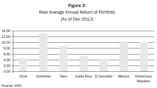 Also, in order to face the problem of coverage, the government has to bring some population's reliance on the private sector. After 20 years of launching the Private Pension Funds in Peru, there is some uncertainty between affiliates (See Moron, 2003 and Kapsoli, 2007). The return of equity (ROE) for Peruvian Private Pensions Funds is above 20 even within the worst Peruvian financial period (Superintendencia de Banca y Seguros). However, the unreliability in the private system does not reflect the fact that the Private Pension Funds have made a real return of portfolio above the average in the region (see figure 3).