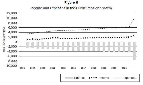 The fiscal unsustainability may be triggered shortly if we consider a negative shock in commodities plus increases in international interest rates. The Peruvian economy is still dependent on external variables, so there has to be some actions to close the gaps in the ''Pay as You Go System.''
