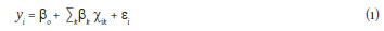Para el caso de estudio, se realiza la siguiente especificación del modelo lineal general y se estima mediante mínimos cuadrados ordinarios.