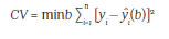 El parámetro b es calculado mediante el criterio de validación cruzada (CV):