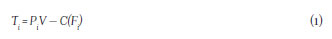 Para cada jugador i = {E, I}. Esta función está compuesta por dos partes; la primera de ellas es PiV, donde Pi explica la probabilidad de éxito deuncombate (en adelante FEC, función de éxito en el combate), V es el valor fijo y exógeno del ingreso derivado por el control del territorio; la segunda parte corresponde a la función de costos del esfuerzo de combate, C(Fi), donde Fi denota el esfuerzo de i. Cada jugador debe elegir Fi, y así el espacio de estrategias está dado por {FE,FI}. Por simplicidad se asume que C(Fi) = F.