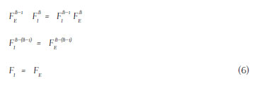 Bajo condiciones simétricas, obtenemos la solución FE = FI. En esta primera etapa los agentes en disputa incurren en esfuerzos de lucha similares, por lo que la probabilidad de éxito de cada uno de los jugadores es Pi = 0,5; bajo este escenario la función lineal de disputa será: