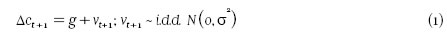Let lowercase letters denote logarithms of uppercase letters, ct = lnCt , and so forth. Consumption growth is an i.d.d. lognormal endowment process,