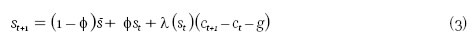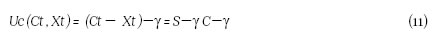 We incorporate habit in consumption to capture intertemporal nonseparability. We assume that habit is external as in Campbell and Cochrane (1999). The habit process is conveniently expressed in terms of the consumption surplus ratio