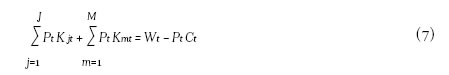 The consumption and portfolio choice problem of a household is as follows. At the beginning of each period t , the household purchases Ct units of a consumption good at price Pt. There are J tradeable assets in the economy, indexed by j; and M monetary assets, indexed by m. In period t, the household invests Kjt units of wealth Wt in asset j and Kmt units in monetary asset m. The gross rates of return on asset j and monetary asset m in period t + 1 are R j,t +1 and Rm,t +1, respectively. The household's total saving in assets satisfies the intraperiod budget constraint:
