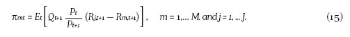 using (13), Et [Qt +1] = , where r f, t is the real risk-free rate. Then, denoting real returns by rm and r