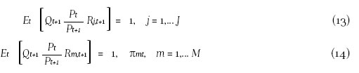 where πmt = Uc (Ct, Xt)/Um (Km,t ) ≥ 0 is the intratemporal marginal rate of substitution between consumption and the monetary asset Kmt; and captures the user cost of money of the monetary asset Kmt, see Barnett and Wu (2005). Equations (13) and (14) are the pricing equations for tradable and monetary assets, respectively. Equation (13) is the fundamental equation of any dynamic asset pricing model. Equation (14) applies to any monetary asset providing liquidity services. Combining (13) and (14) we get: