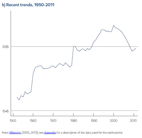 Lustig, N. and Gasparini, L. (2011). The Rise and Fall of Income Inequality in Latin America. In Ocampo, J.A. and Ros, J. (eds.): The Oxford Handbook of Latin American Economics. New York: Oxford University Press, pp. 691-714. Milanovic (2013). Global Income Inequality in Numbers: in History and Now. Global Policy, 4(2): 198-208.