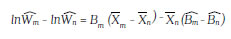 To estimate the wage gap we use the difference of the wage's expected value for the distribution of characteristics for married SM, and the distribution of characteristics for non-married SN, as follow: