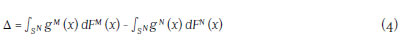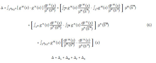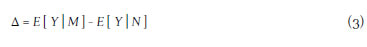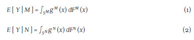 In this approach to model the individuals' earnings let Y denote the outcome, X the individual characteristics, and FM and FN the cumulative distribution function that conditions the characteris tics of each individual of the two groups respectively. The relationship between the expected value, conditioning on the characteristics and the marital status, is represented by gM (x) and gN (x).