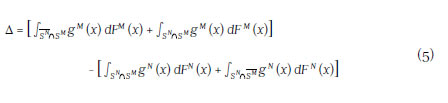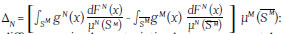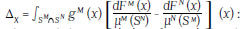 Now we divide each integral into two parts, where each one contains the intersection of the common support and out of the support. Considering that the distribution SN is different than SM: