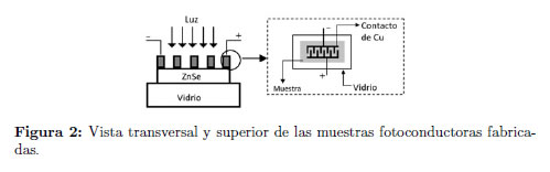 Su respuesta óptica se debe fundamentalmente al tamaño de su brecha de energía prohibida o gap del semiconductor la cual se encuentra ubicada en 2,87 eV [6],[7], valor que se encuentra en el azul del espectro visible. Este material puede cristalizar en dos tipos de estructuras cristalinas: Zincblenda (cúbica) y Wurtzita (hexagonal), cuyos sistemas cristalinos asociados a estas estructuras son Fm< 43 > y Pmc< 186 >, respectivamente. La fabricación de ZnSe en forma de película delgadas se ha realizado a partir de diferentes técnicas: haces moleculares (Molecular Beam Epitaxy, MBE) [8], deposito químico en fase vapor con precursores orgánico-metálicos (Metal Organic Chemical Vapor Deposition, MOCVD) [9], spray pirolisis [10], evaporación asistida por láser pulsado [11], métodos químicos [12] y pulverización catódica [13]. Este trabajo presenta el estudio de las propiedades opto-eléctricas (respuesta espectral y temporal) y morfológicas de las películas delgadas de ZnSe en función de la temperatura de sustrato, las cuales fueron depositadas sobre sustratos de vidrio por evaporación térmica de alto vacío.