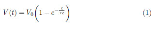 De las figuras se observa que el voltaje de saturación aumenta linealmente con el voltaje de polarización. Este comportamiento era de esperarse porque la densidad de corriente es proporcional al campo eléctrico aplicado. En la Figura 7d se presenta con línea continua el ajuste teórico de una de las curvas de relajación, cuya curva de crecimiento fue ajustada a la función exponencial de la forma
