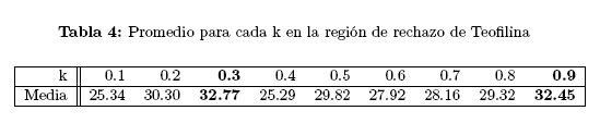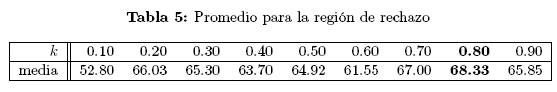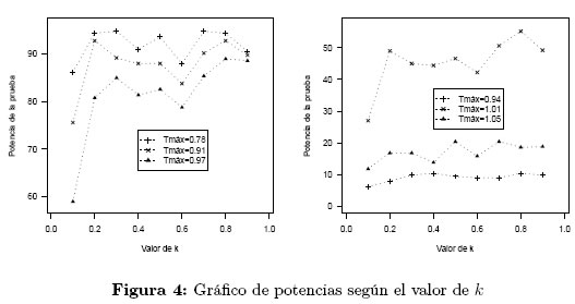 El mayor valor de la potencia promedio se obtiene para k = 0.3 y k = 0.9 alcanzando una potencia promedio por encima del 32%, y depende de los valores de β que fueron usados en la hipótesis alternativa, es posible que este valor sea más alto en la medida que se tengan en cuenta valores de β considerablemente distantes del valor local usado, es decir, al considerar perturbaciones de órdenes mayores para los tres parámetros. Con los resultados obtenidos hasta este momento no hay una conclusión contundente acerca del valor apropiado para k que dé una mayor potencia para la prueba de hipótesis.