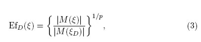 Si ξD, es un diseño D-óptimo, entonces la D-eficiencia, denotada por EfD(ξ), de cualquier otro diseño ξ, relativa al diseño óptimo se define como [15]: