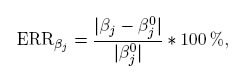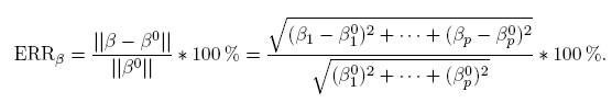 Definición 3.1 (Error relativo). Sea β ∈ Rp un vector de p parámetros desconocidos y β0 ∈ Rp un vector de valores conocidos. Se define el error relativo de β con respecto a β0, denotado por ERRβ, como una aplicación, ERR : Rp → R dada por: