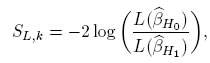 donde g(β) es una función lineal o no lineal en los parámetros de interés. El estadístico de prueba, SL;k para probar las hipótesis anteriores se obtiene a partir del estadístico de razón de verosimilitudes dado en [20]: