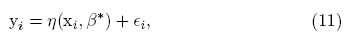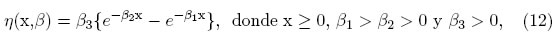 donde: β ∈ Rp es un vector de p parámetros desconocidos, η(x; β) es una función lineal o no lineal en los parámetros, ϵ es el término de error aleatorio y representa la información que no alcanza a ser explicada por el modelo y se asume que se distribuye normal con media cero y varianza constante σ2. Además, los errores se supone son independientes para diferentes repeticiones del experimento.