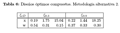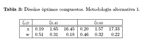 • Se calcula el diseño óptimo compuesto ξk , cD-óptimo, diseño que maximiza la expresión dada en (6).