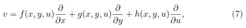 When applying the theorem (2.1) to a differential equation, it is obtained an equation equal to zero, which can involve x, y and u and its partial derivatives to the second order and also functions f, g, h of the symmetry group with their partial derivatives to the second order with respect to x, y and u. After replacing in this equation the condition given by the differential equation, that is, F(x, y Pr2u(x, y)) = 0, collecting the coefficients of u and its derivatives, and equating these coefficients to zero, it results a system of partial differential equations called the determining equations that very often can be solved by elementary methods, giving in this way the most general form of the infinitesimal symmetry of the equation.
