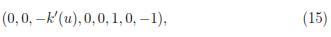 After replacing hxx and hyy of expressions (11) and (12) and substituting uxx = utt + k(u) whenever it occurs in (17) and then collecting terms of each one of the derivatives of u, equating their coefficients to zero and solving the resulting determining system for the functions f, g and h, the following vectors or symbols of the symmetry group are found