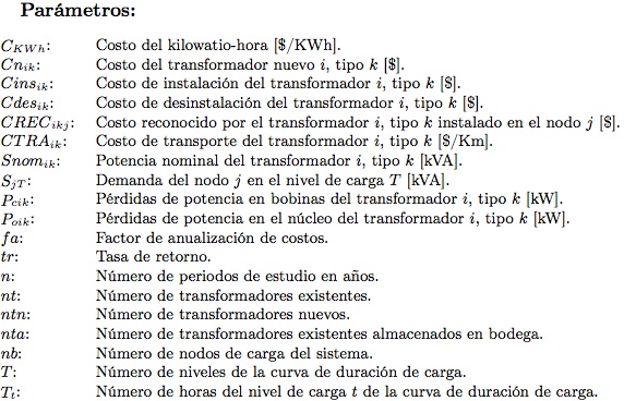 Quintero en [4] propone una metodología para la reubicación de transformadores de distribución en el nivel de tensión 1, considerando un modelo mono-objetivo, en el cual se maximiza el beneficio relacionado con los cargos por uso de los transformadores. La metodología consiste en reubicar el parque de transformadores con el fin de mejorar la cargabilidad en cada una de las unidades de transformación. El problema es solucionado utlizando un algoritmo genético básico. Acosta et al. en [5] presentan una metodología para reubicar transformadores en un sistema de distribución, usando el algoritmo Simulated Annealing, con el fin de mejorar la cargabilidad, eficiencia y por ende reducir las pérdidas técnicas del sistema. Los autores plantean un problema de optimización mono-objetivo teniendo en cuenta los costos de operación e inversión del sistema. Los resultados son validados en un sistema de tamaño real. Nuñez et al. en [6] proponen una metodología para la reubicación óptima de transformadores para disminuir las pérdidas técnicas en los sistemas de distribución. Para describir el problema plantean un modelo matemático que involucra costos de transporte, costos de transformadores nuevos, costos operativos asociados a las pérdidas técnicas y costos de instalación y desinstalación de los transformadores. Adicionalmente se corrige el efecto de la reubicación sobre la coordinación de fusibles de protección en el sistema.