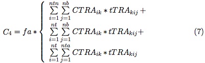 La función objetivo descrita en la ecuación (1) (Z1), tiene como finalidad minimizar los costos de operación (pérdidas de energía) e inversión (transformadores nuevos, instalación y desinstalación y costos correspondientes a transporte). Los términos C1, C2, C3 y C4 se presentan en forma detallada en las ecuaciones (4), (5), (6) y (7), respectivamente. El término C1 corresponde al costo de las pérdidas de energía en los arrollamientos y el núcleo de los transformadores de distribución. El término C2 considera el costo de los transformadores nuevos que se instalan en el sistema. El término C3 involucra el costo de instalación y/o desinstalación de los transformadores de distribución. El término C4 lleva en cuenta los costos de transporte, el cual está discriminado en tres partes: la primera corresponde al costo de transporte de un transformador nuevo desde la bodega de almacenamiento hacia un nodo de carga, la siguiente involucra los costos de transporte de un transformador de un nodo de carga a otro y la última parte representa los costos de transporte de un transformador desde un nodo de carga hasta la bodega de almacenamiento.