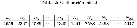La codificación utilizada en este trabajo para llevar a cabo la reubicación de transformadores de distribución es entera y se representa por medio de un vector de tamaño igual al número de nodos que tiene el sistema de distribución. Este vector está dividido en dos partes: una para transformadores monofásicos y otra para trifásicos. Cada posición del vector contiene un número entero correspondiente a la placa (código) que identifica a cada transformador. La numeración correspondiente a los transformadores existentes es diferente a la de los transformadores nuevos con el fin de evitar conflictos dentro de la metodología. La codificación empleada se muestra en las Tablas 2, 3 y 4, donde las letras minúsculas corresponden a transformadores monofásicos y las máyúsculas a trifásicos. En la Tabla 2 se presenta una configuración inicial para el problema. En la Tabla 3 se ilustra la codificación cuando el método propone intercambiar transformadores existentes que se encuentran en las posiciones n1 y nb1. En la Tabla 4 se presenta la codificación cuando se propone el cambio de un transformador nuevo con placa 042 por uno existente ubicado en el nodo N3.
