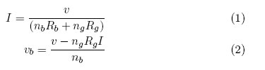 Donde nl es el número de granos por unidad de longitud y l es la longitud de la película en la dirección del flujo de corriente. Debido al tamaño promedio de cada grano, en general se satisface que q|vb| ≪ kT. Teniendo en cuenta esta aproximación, la ecuación (6) se puede escribir como:
