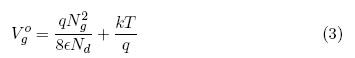Donde Ng es la densidad de estados ocupados en la frontera de grano, ϵ la permitividad del material, k la constante de Boltzmann y T la temperatura absoluta de la muestra. Si se aplica una diferencia de potencial vb en los extremos de la frontera de grano, el potencial de barrera se escribe como: