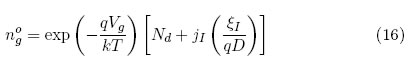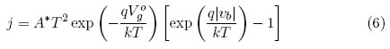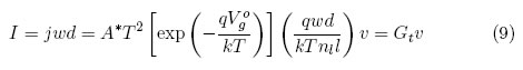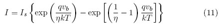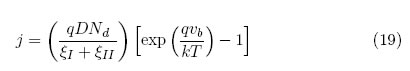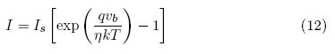 Donde Is es la corriente de saturación y η es el factor de idealidad. η es un parámetro que se utiliza para ajustar los datos experimentales a la predicción teórica. Puesto que tipicamente η > 1, la corriente a través de una sola frontera de grano se puede expresar como [34]: