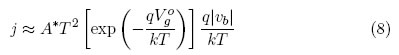 Usando las ecuaciones (7) y (8), se obtiene que la corriente total debido al proceso de emisión termoiónica se puede escribir como: